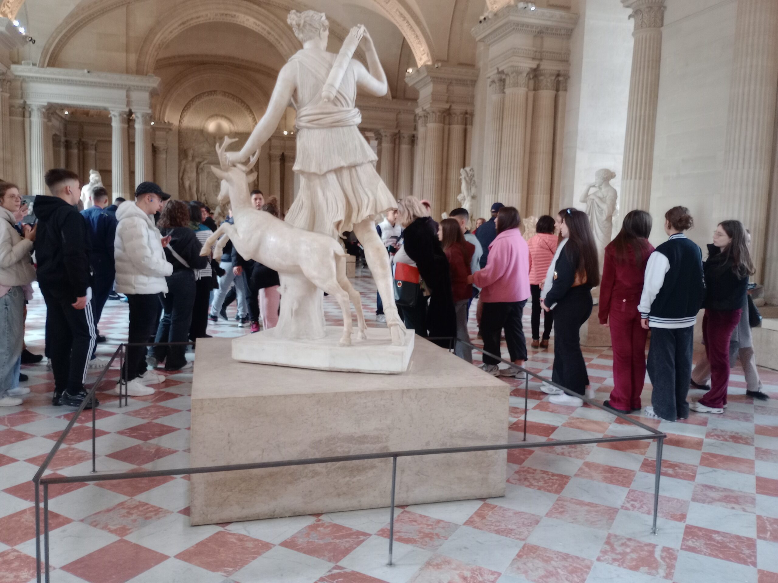 Τη δεύτερη ημέρα πραγματοποιήθηκε επίσκεψη στο Louvre Museum, όπου οι μαθητές γνώρισαν σημαντικά έργα παγκόσμιας πολιτιστικής κληρονομιάς. Στην ελληνική πτέρυγα ξεχώρισαν η Venus de Milo και η Winged Victory of Samothrace, ενώ ιδιαίτερη εντύπωση προκάλεσε η διάσημη Mona Lisa του Leonardo da Vinci. Οι μαθητές είχαν επίσης την ευκαιρία να δουν έργα σημαντικών καλλιτεχνών της Αναγέννησης και του Ρομαντισμού, όπως του Jacques‑Louis David και του Eugène Delacroix.