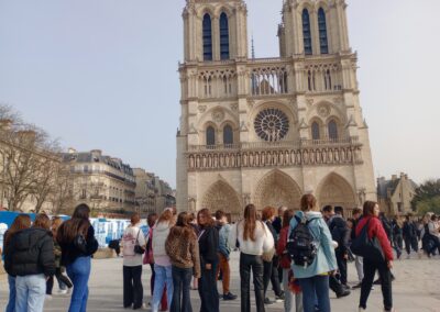 Ιδιαίτερο ενδιαφέρον παρουσίασε η γνωριμία με τα νησιά του ποταμού, το Île Saint‑Louis και το Île de la Cité, όπου βρίσκεται ο εμβληματικός ναός της Notre‑Dame de Paris. Η περιήγηση συνεχίστηκε στην ιστορική πανεπιστημιακή περιοχή του Sorbonne University και στο Latin Quarter. Στη συνέχεια οι μαθητές επισκέφθηκαν την Trocadéro, απολαμβάνοντας την πανοραμική θέα προς τον Eiffel Tower, ένα από τα πιο αναγνωρίσιμα σύμβολα της πόλης.